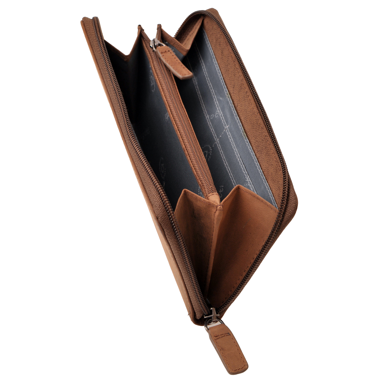 Stylová dámská kožená peněženka bugatti Luca je vyrobena z odolné broušené Hunter kůže, která zaručuje dlouhou životnost a s každým používáním získává charakteristickou patinu, typickou pro oblíbený vintage vzhled. Každý dotek tak podtrhuje její jedinečný charakter.