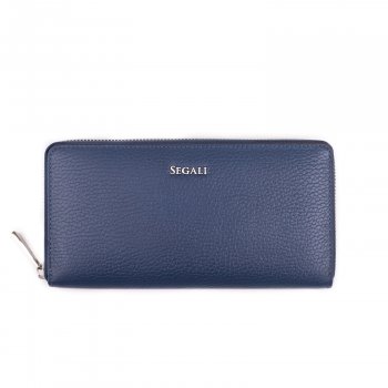 Kožená dámská peněženka značky SEGALI v elegantní modré barvě. Peněženka je moderního dlouhého formátu a celá se uzavírá na zip a pohodlně do ní umístíte bankovky, drobné a karty.