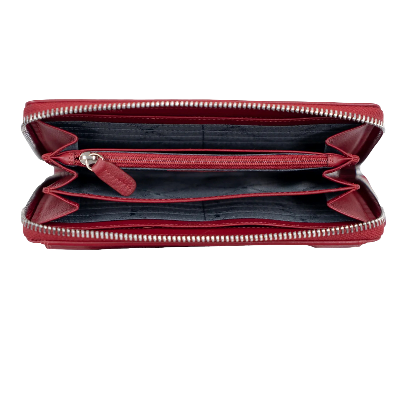 Tato prostorná dámská zipová peněženka z naší bestsellerové kolekce spojuje nadčasovou eleganci s praktickým uspořádáním. Je vyrobena z měkké, jemně zrněné hovězí kůže v klasické červené barvě s decentním leskem, díky čemuž působí luxusně a zároveň příjemně padne do ruky.