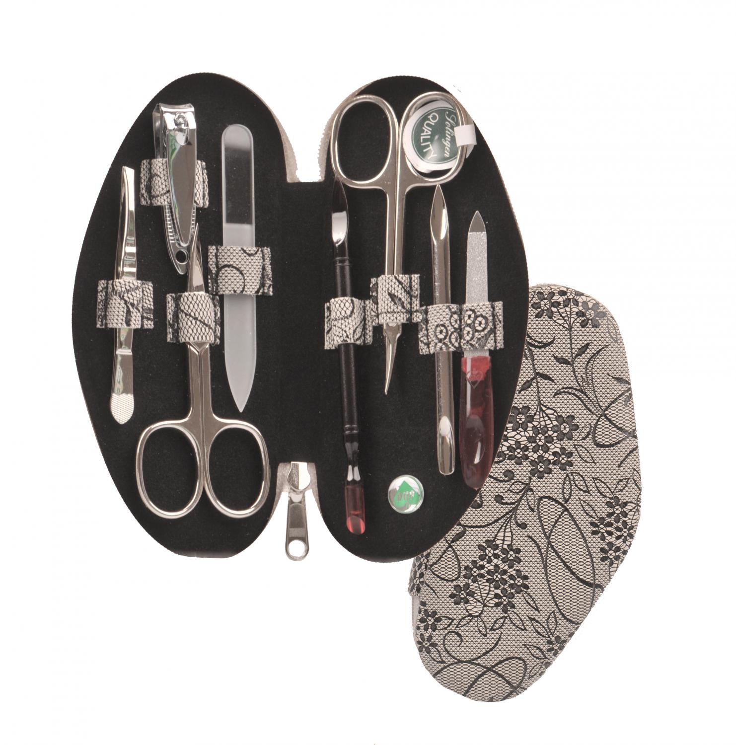 Obsahuje manikúrní náčiní značky DUP a Solingen. Uzavírá se zipem.