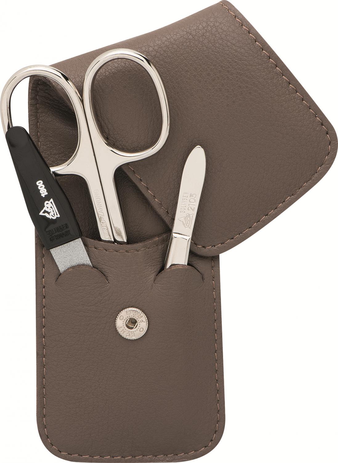Malá kvalitní manikúra sada 3 díly v koženém pouzdře 9208 hnědá