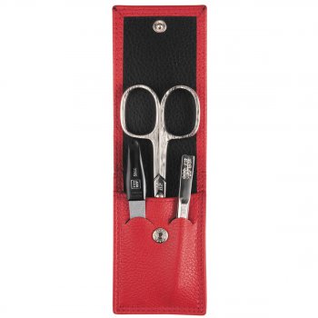 Pouzdro manikúry YES Solingen se zavíráním na patent je vyrobeno z pravé kůže. Elegantní kombinace červené a černé barvy a jednoduchý design pouzdra, Vás zaujme na první pohled. Manikura je vybavena kvalitními nástroji Yes Solingen.