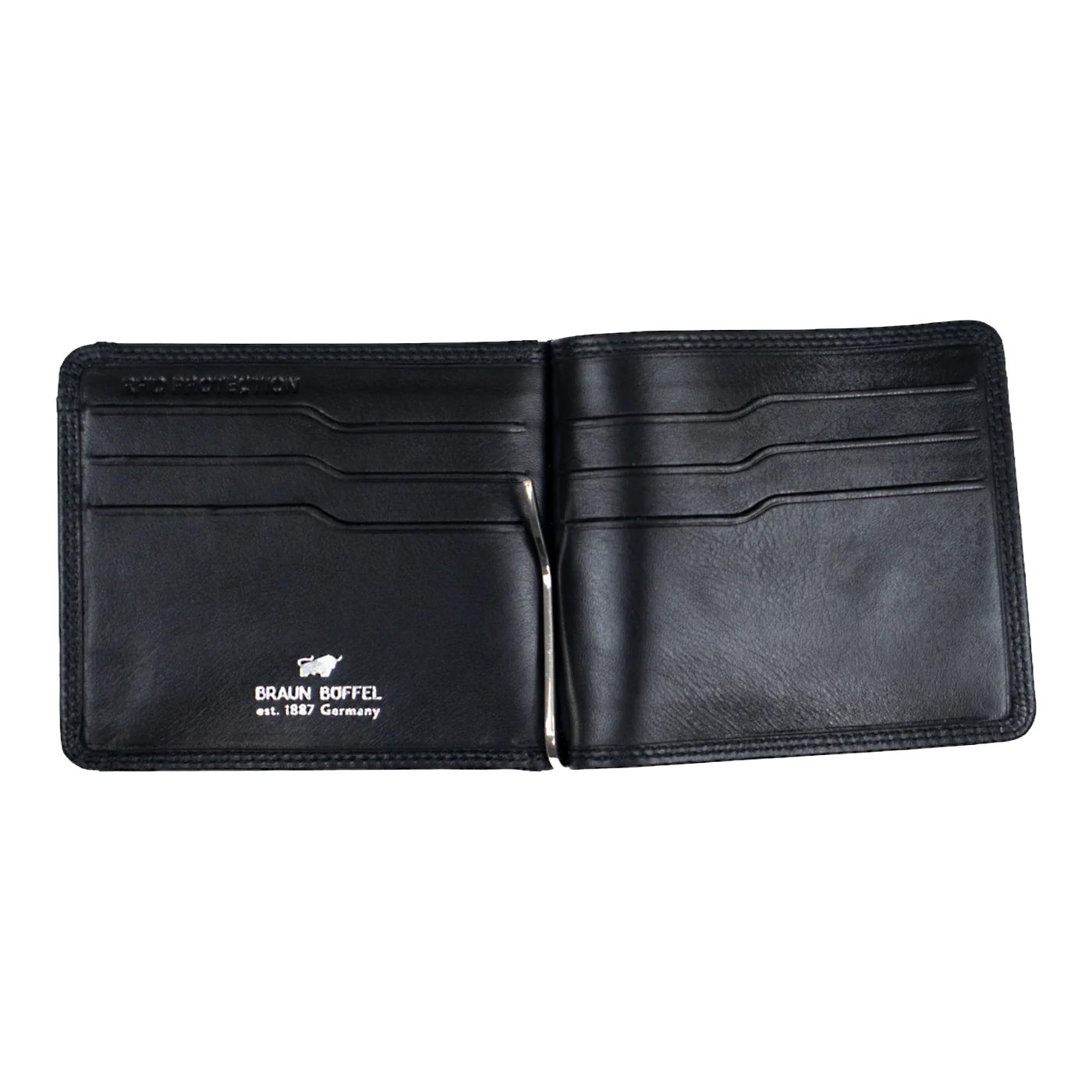 Uvnitř je umístěna pevná kovová klipsa na bankovky, která udrží bankovky bezpečně na místě – ideální volba pro ty, kteří preferují jednoduchou a přehlednou organizaci.