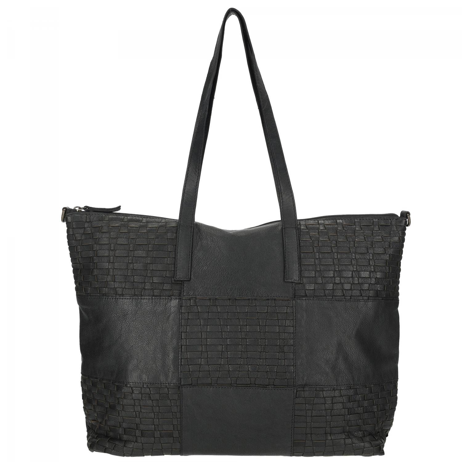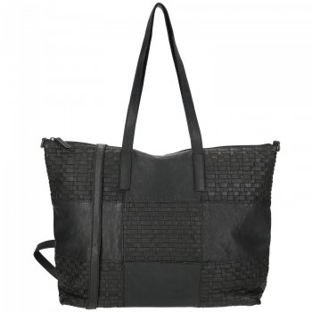 Proplétaná velká kožená shopper kabelka Sicily 89033-001 černá