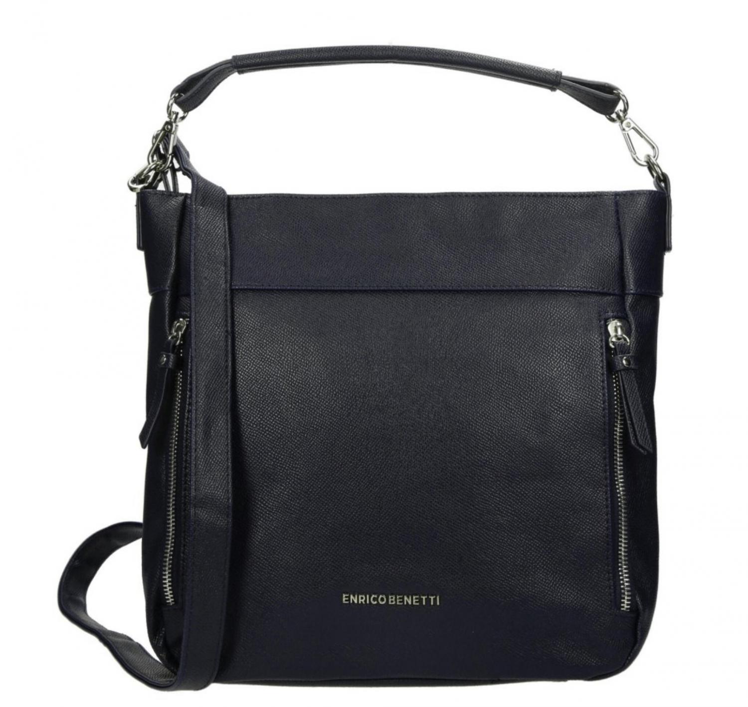 Nadčasová dámská kabelka značky ENRICO BENETTI je vyrobená z kvalitní koženky. Na přední straně je ozdobená kovovým logem značky a dvěma zipovými kapsičkami. Kabelku můžete nosit v ruce, nebo si připnete dlouhý popruh na rameno, který umožňuje také crossbody nošení. Tato kabelka se hodí na každodenní nošení.
