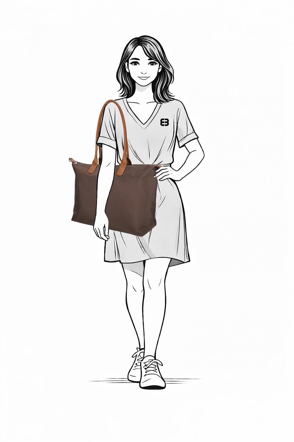 Dlouhá dvojitá ucha umožňují pohodlné nošení přes rameno. Kabelku lze díky odnímatelnému a nastavitelnému popruhu nosit také přes rameno nebo jako crossbody. Díky své prostornosti je ideální do práce, na nákupy i pro volný čas.