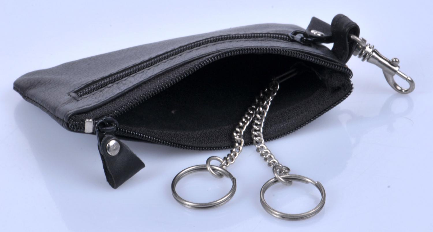Luxusní klíčenka vyrobená z krásné hovězí kůže. Na přední straně zip na drobné. Uvnitř dva kroužky na řetízku na klíče.