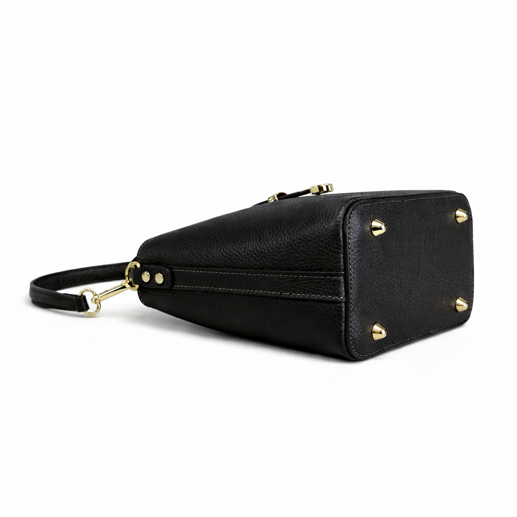 Pevná konstrukce drží tvar, ochranné nožičky chrání dno a kvalitní kůže odolná proti poškrábání zaručuje, že kabelka bude dlouho vypadat jako nová.