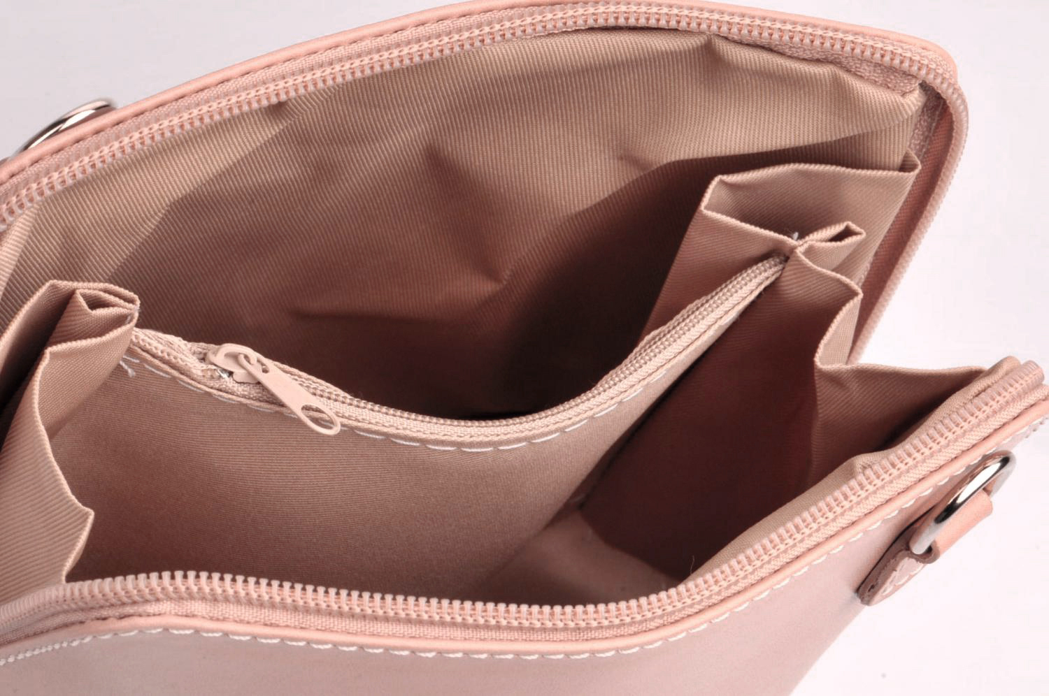 • Hlavní prostor je na zip, vnitřní část kabelky je rozdělena na dva stejné prostory pomocí zipové kapsy.