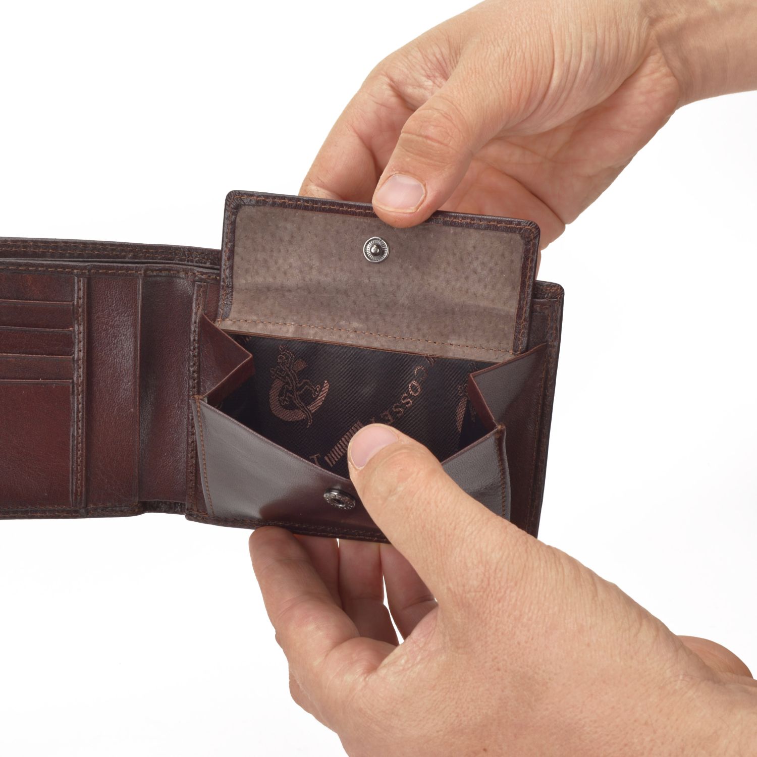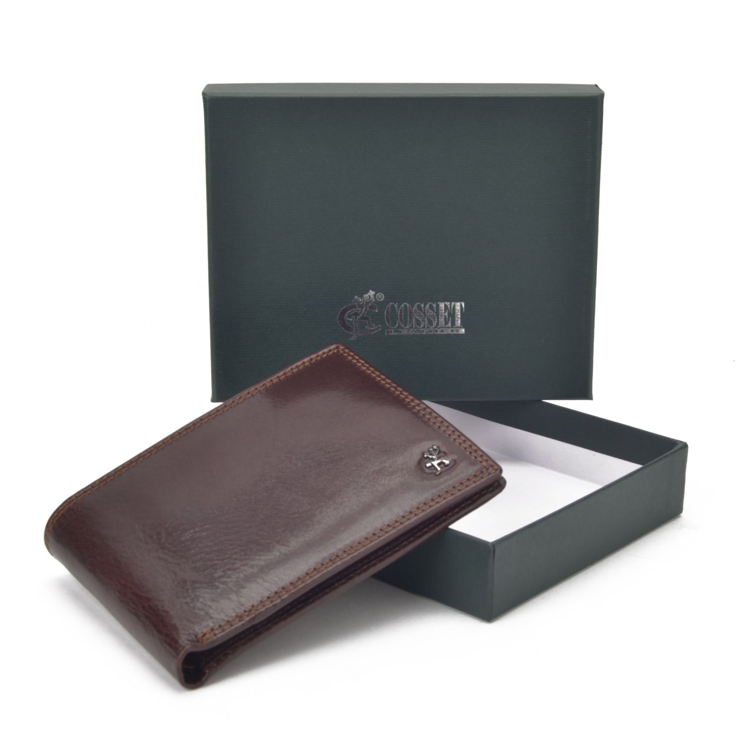 Pánská peněženka Cosset Komodo z pravé kůže zdobená kovovým logem.