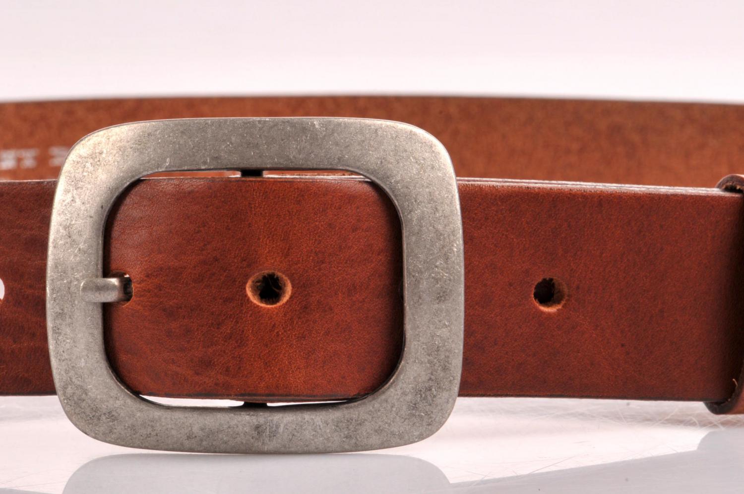Hnědý dámský kožený opasek o šířce 40 mm má pěknou sponu s povrchovou úpravou stíraný zinek. Tato spona neobsahuje nikl. Pásek je vyrobený z hnědé kůže v moderním designu. Opasek má zabarvené hrany a upravený rub pásku, což zaručuje, že nedojde k zabarvení oděvu. Pásek je prošitý a lze ho zkrátit pomocí šroubku, který spojuje opasek a kožený díl se sponou. Na výběr máte z pěti různých délek opasků. Prvotřídní kvalita od českého výrobce.
