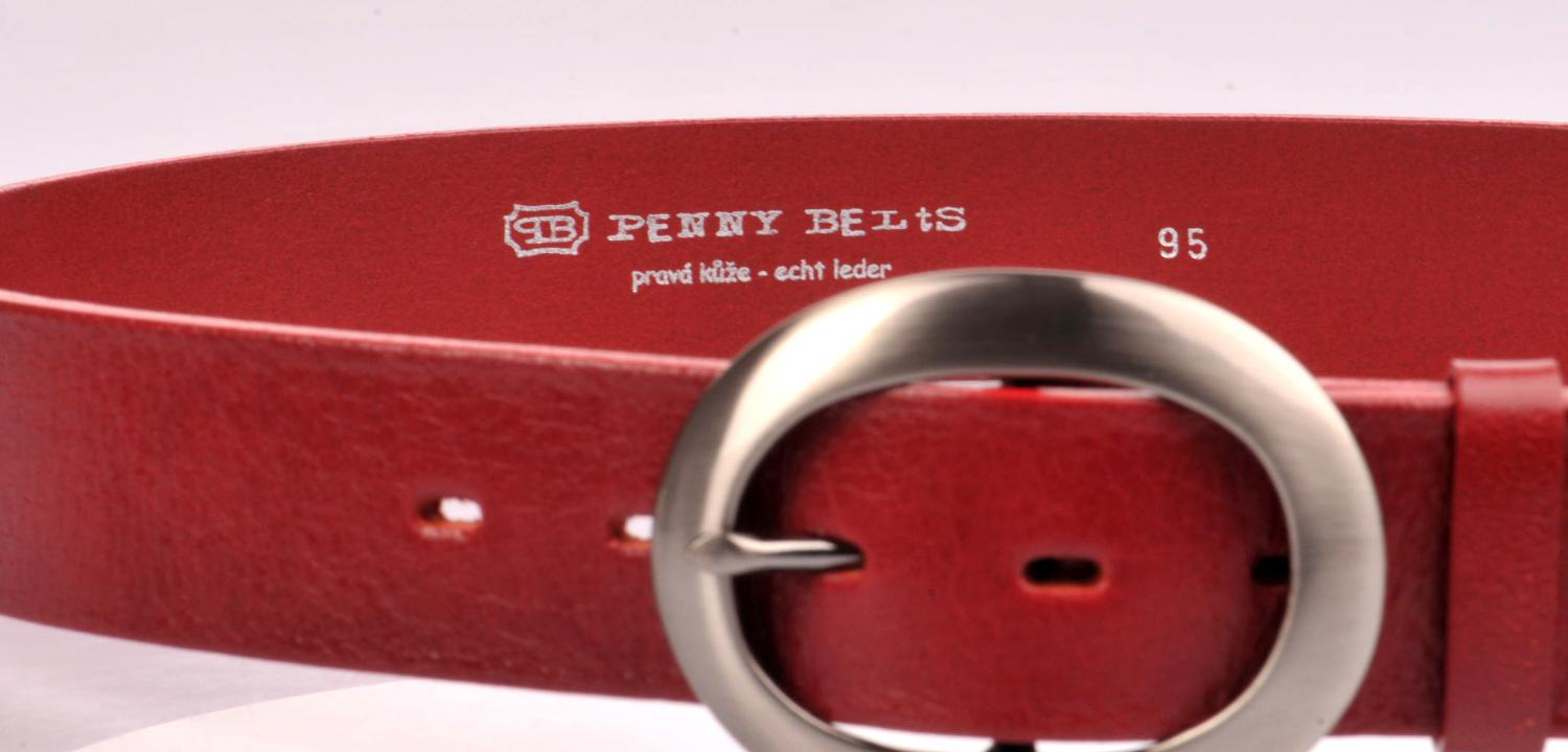 Dámský kožený úzký pásek červený 15-2-93, Penny Belts