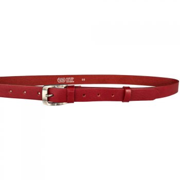 Elegantní dámský úzký pásek se hodí do kalhot nebo na šaty. Nádherná červená barva zaujme a rozjasní váš outfit. Pásek je vyrobený z kvalitní hovězí kůže a má šířku 2,5 cm. Spona pásku je ve stříbrné barvě s povrchovou úpravou nikl satinato obsahuje nikl a je zdobená kamínky.