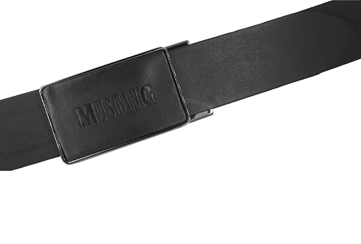 Černý pánský kožený pásek MUSTANG o šířce 35 mm má zajímavě řešenou plnou sponu s povrchovou úpravou NKS (nikl satinato) a přezka je potažená kůží s logem značky Mustang. Tento opasek nemá dírky - spona AUTOMAT se zapíná speciálním mechanismem. Pásek je vyrobený z kvalitní kůže v černé matné barvě. Opasek je vhodný na nošení při společenských událostech, ale také můžete bez obav nosit v jeansech.