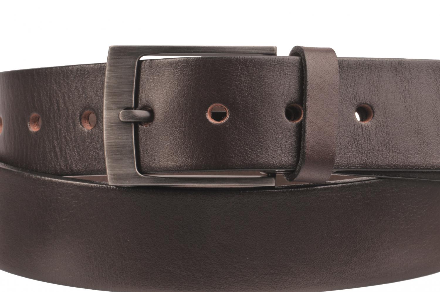 Pánský kožený opasek o šířce 40 mm má elegantní sponu s povrchovou úpravou NKS, spona obsahuje nikl. Pásek je vyrobený z hladké matné kůže se zcela patrnou strukturou. Opasek má zabarvené hrany a upravený rub pásku, což zaručuje, že nedojde k zabarvení oděvu. Pásek není prošitý a lze ho zkrátit pomocí šroubku, který spojuje opasek a kožený díl se sponou.