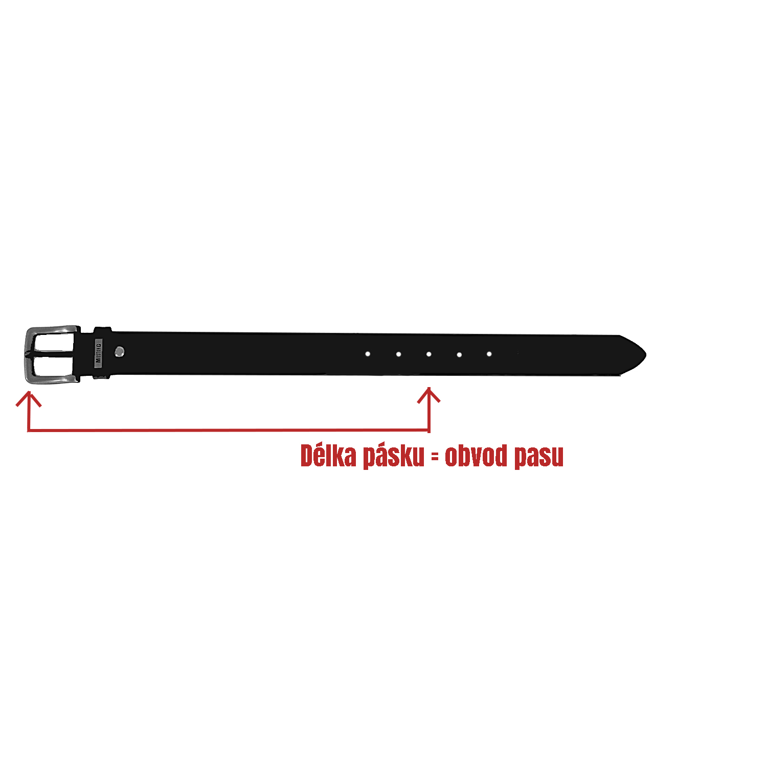 Námi udané velikosti pásků jsou shodné s Vámi naměřeným údajem (95 cm v pase odpovídá velikosti opasku 95 cm). Velikost měříme od prostřední dírky ke konci spony (velikost se může nepatrně lišit podle typu spony), celková délka opasku je vždy o cca 15 cm delší než je velikost udávaná na opasku. Všechny nabízené opasky jsou konstruovány tak, aby u jedné délky byla tolerance zapnutí +/- 10 cm.