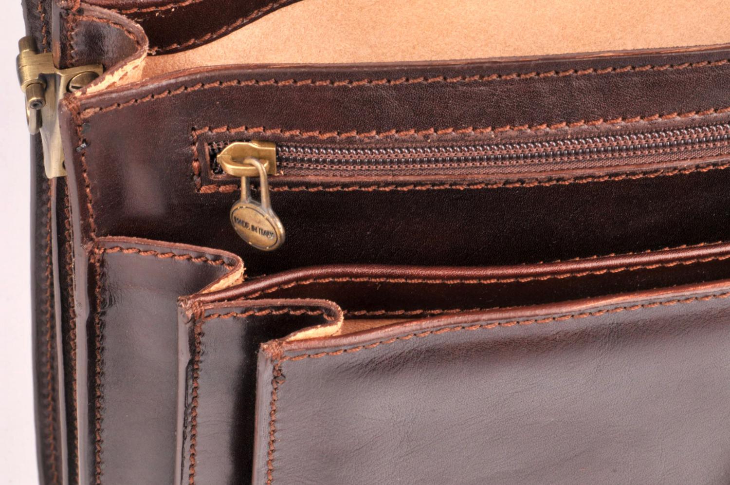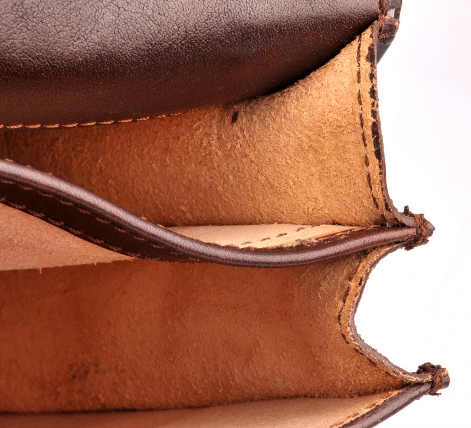 - aktovka není uvnitř vypodšívkovaná látkou, je vyložená přírodní kůží
