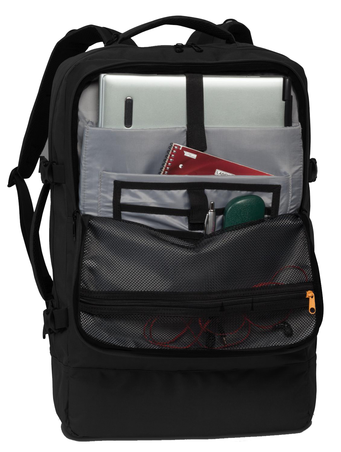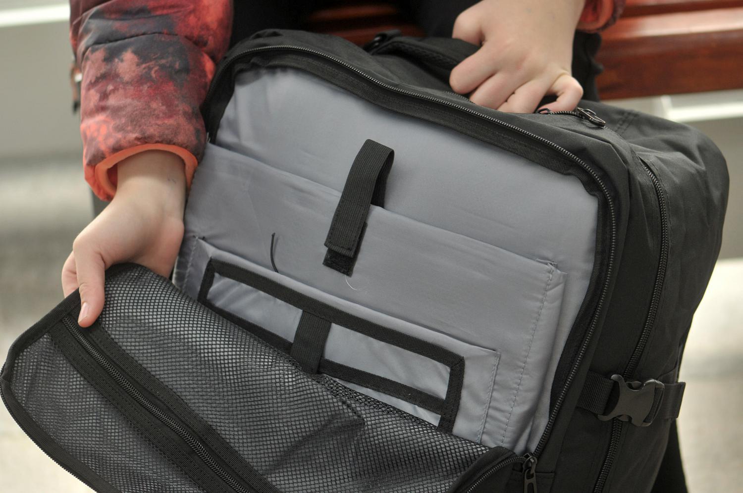 • Batoh má na přední straně praktickou větší kapsu s vypolstrovanou kapsou na notebook 17"   (max. rozměry 40 x 32 cm) a  přihrádku na tablet a praktický organizér na menší předměty jako jsou  např. cestovní doklady,  peněženku nebo mobilní telefon, do větší kapsy ze síťoviny můžete vložit i dokumenty formátu A4.