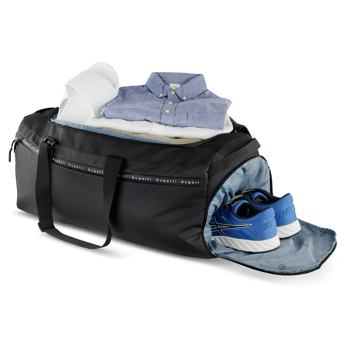 Blanc DeLight Weekender jednoduše kombinuje vše, co si na zavazadle můžete přát. Cestovní taška Bugatti navržená se sportovním vzhledem je nejen lehká a robustní, ale také extrémně prostorná. Blanc DeLight Weekender je proto ideální na pár dní nebo třeba pojme vaše osobní věci na celý týden. Cestovní tašku můžete využít i na trénink a sbalit si veškeré sportovní vybavení přehledně a budou dobře chráněné. Bugatti ví, na čem opravdu záleží.