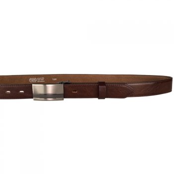 Pánský kožený opasek o šířce 30 mm má pěknou plnou sponu s povrchovou úpravou NKS (nikl satinato). Tato spona obsahuje nikl. Pásek je vyrobený z matné hnědé usně, která je příjemná na omak. Opasek je vhodný na nošení při společenských událostech. Pásek má lakované hrany i rub opasku, což zaručuje, že nedojde k zabarvení oděvu. Opasek není prošitý a lze ho zkrátit - rozepnout sponu a ustřihnout kůži. Na výběr máte z různých délek opasků. Prvotřídní kvalita od českého výrobce.