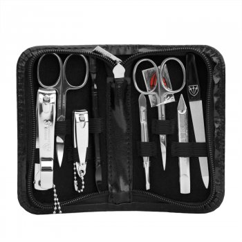 Pánská černá manikúra 8-ti dílná sada v černém koženkovém pouzdře 5213 MC L