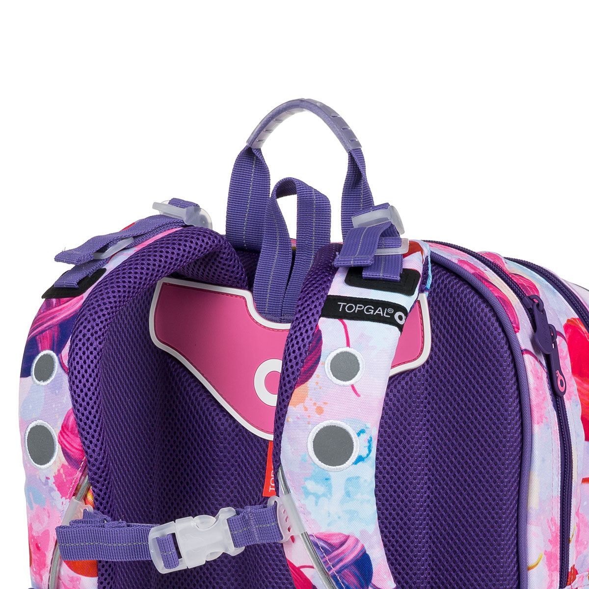 Díky zádovému systému z anatomicky tvarované lisované pěny se nám váhu batohu podařilo snížit pod jeden kilogram, což určitě ocení každý rodič. Bude dobře pasovat i na záda drobné prvňačky, ramenní popruhy jsou totiž polstrované, ergonomicky tvarovanéa hlavně –dají se utáhnout v jejich horní i spodní části. Výškově nastavitelný hrudní pásek zajistí to, že popruhy nebudou sjíždět ani z drobných zádíček.