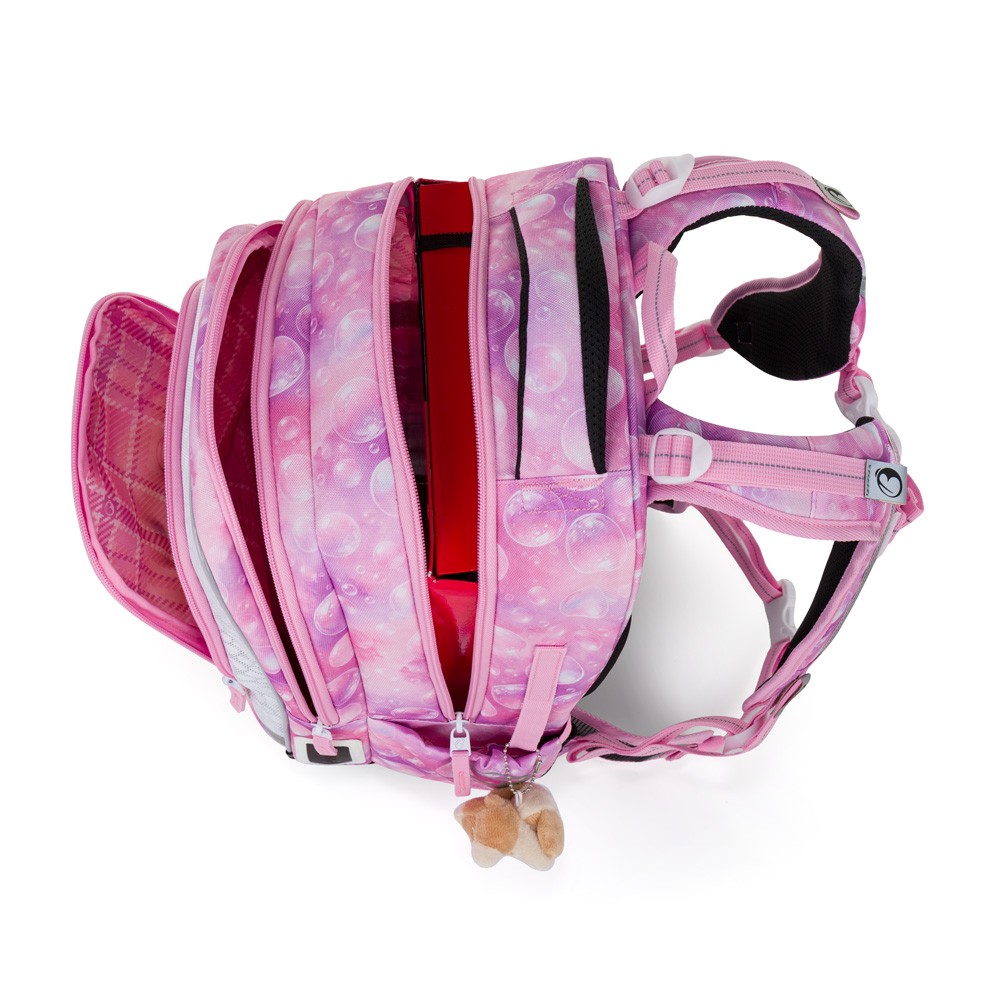 • Drobnější věci si může školačka schovat do kapsy na zip, která je v horní části vaku.
