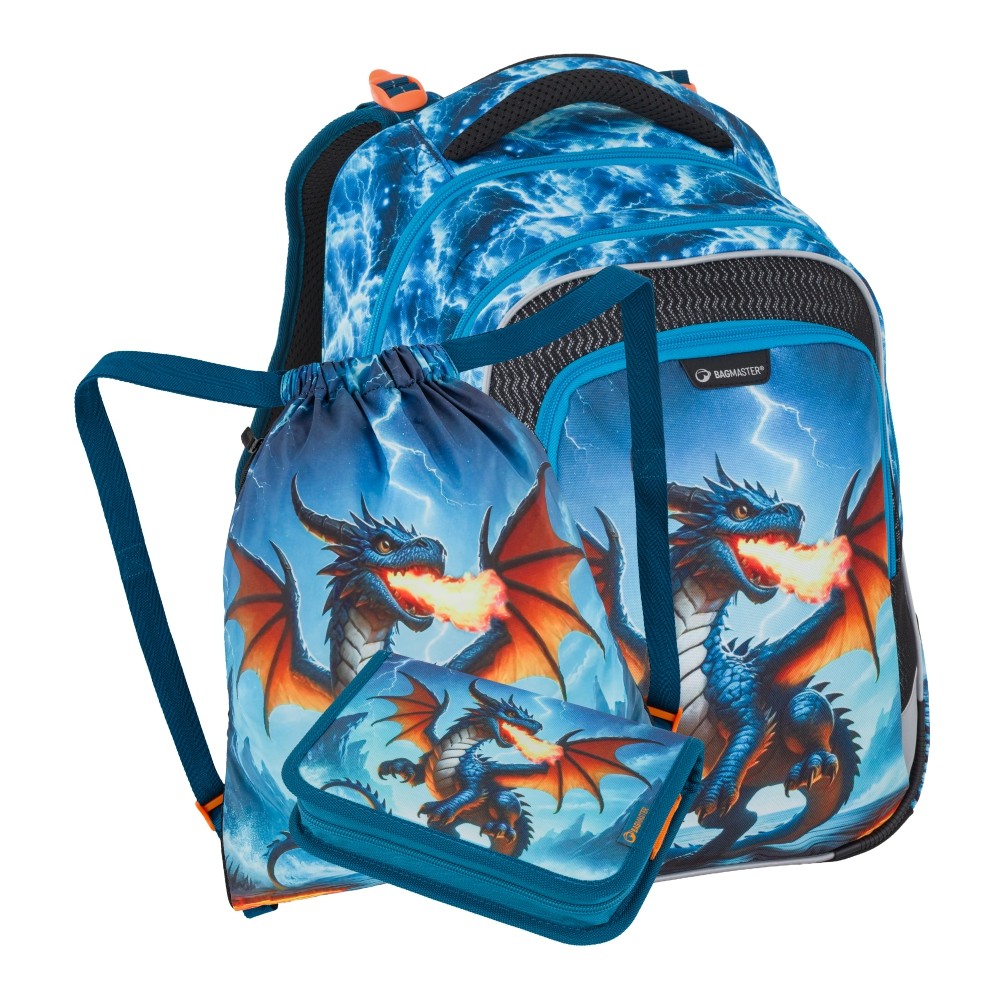 Malý školní set LUMI 26 D batoh, sáček a penál - drak, lehký ergonomický set pro prvňáčky