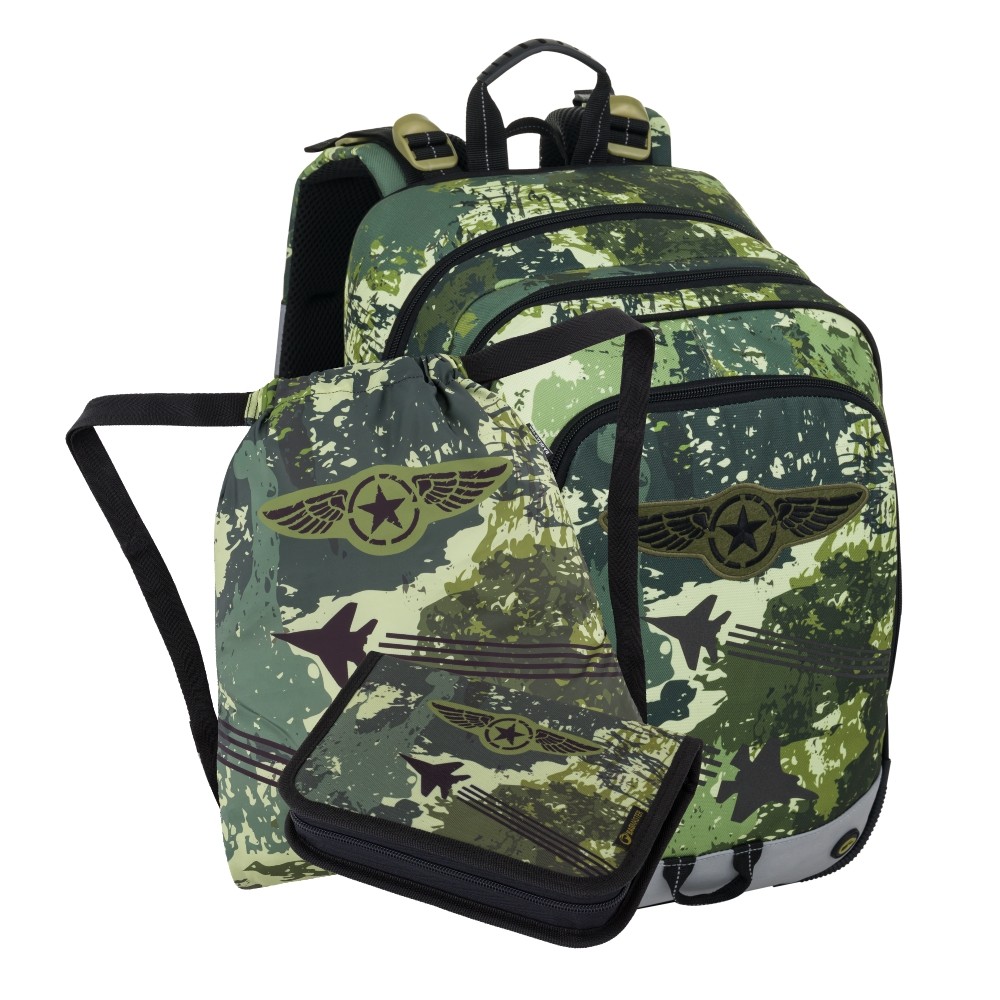 Nastavitelné ramenní popruhy: Široké a pevné popruhy, které neřežou na ramenou, lze přizpůsobit postavě školáka pomocí praktických přezek.