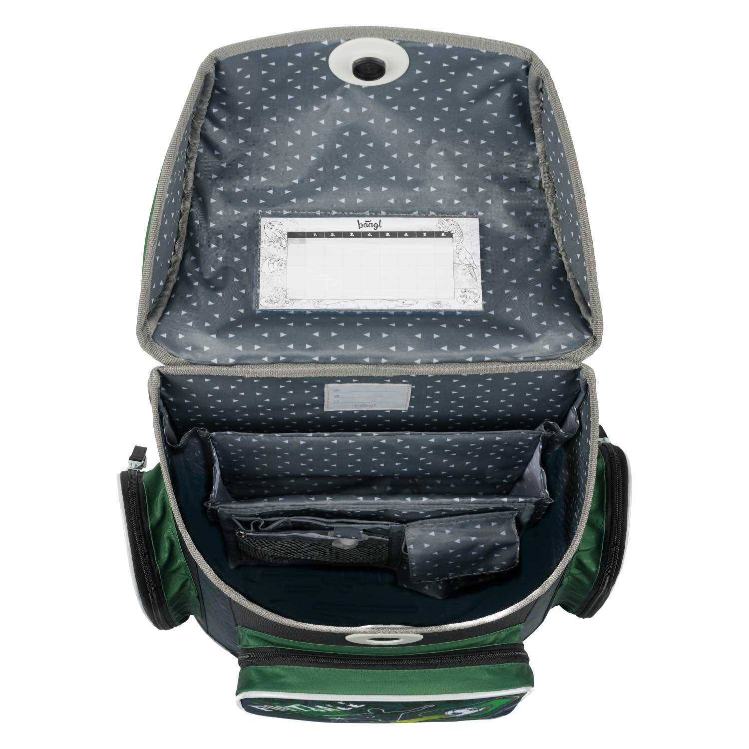 Aktovka má jednu hlavní kapsu, která je dostatečně prostorná, pohodlně do ní děti vloží desky na sešity formátu A4, desky na písmenka, učebnice, penál. Uvnitř, u zad aktovky jsou přihrádky na zasunutí velkých a malých sešitů. Uvnitř aktovky je také průhledná kapsa s rozvrhem a vnitřní organizér s karabinkou na klíče, kapsou na mobil.